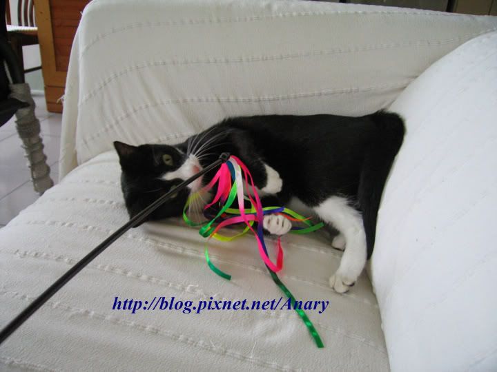 當馬麻躺在沙發上看書時,二貓超無聊。所以,馬麻每看幾章,就要起來陪貓運動一下。