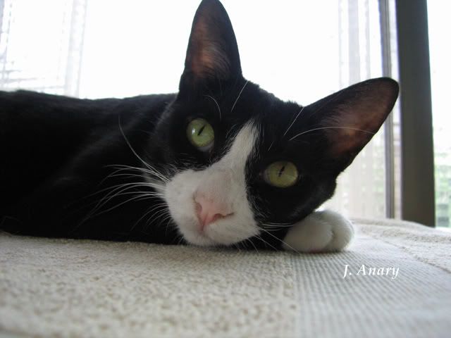 三花媽媽還是縮著不動。(眼睛在偷瞄我喔。)